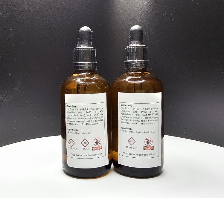 This Natural Antibacterial Chlorine Dioxide Solution water purification kit is the new protocol for activating the 25% sodium chlorite with 4% Hydrochloric Acid to make chlorine dioxide in only 20 - 30 seconds for Sport outdoors, Camping, Hiking, Outdoors water purification and treatment.